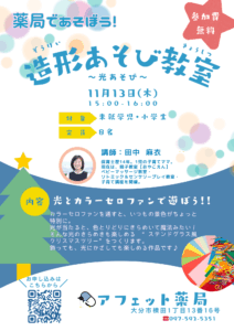 11・13 『造形あそび教室~光あそび~』開催のお知らせ