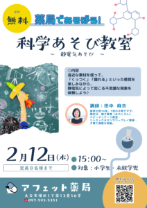 2・12 『科学あそび教室~静電気あそび~』開催のお知らせ